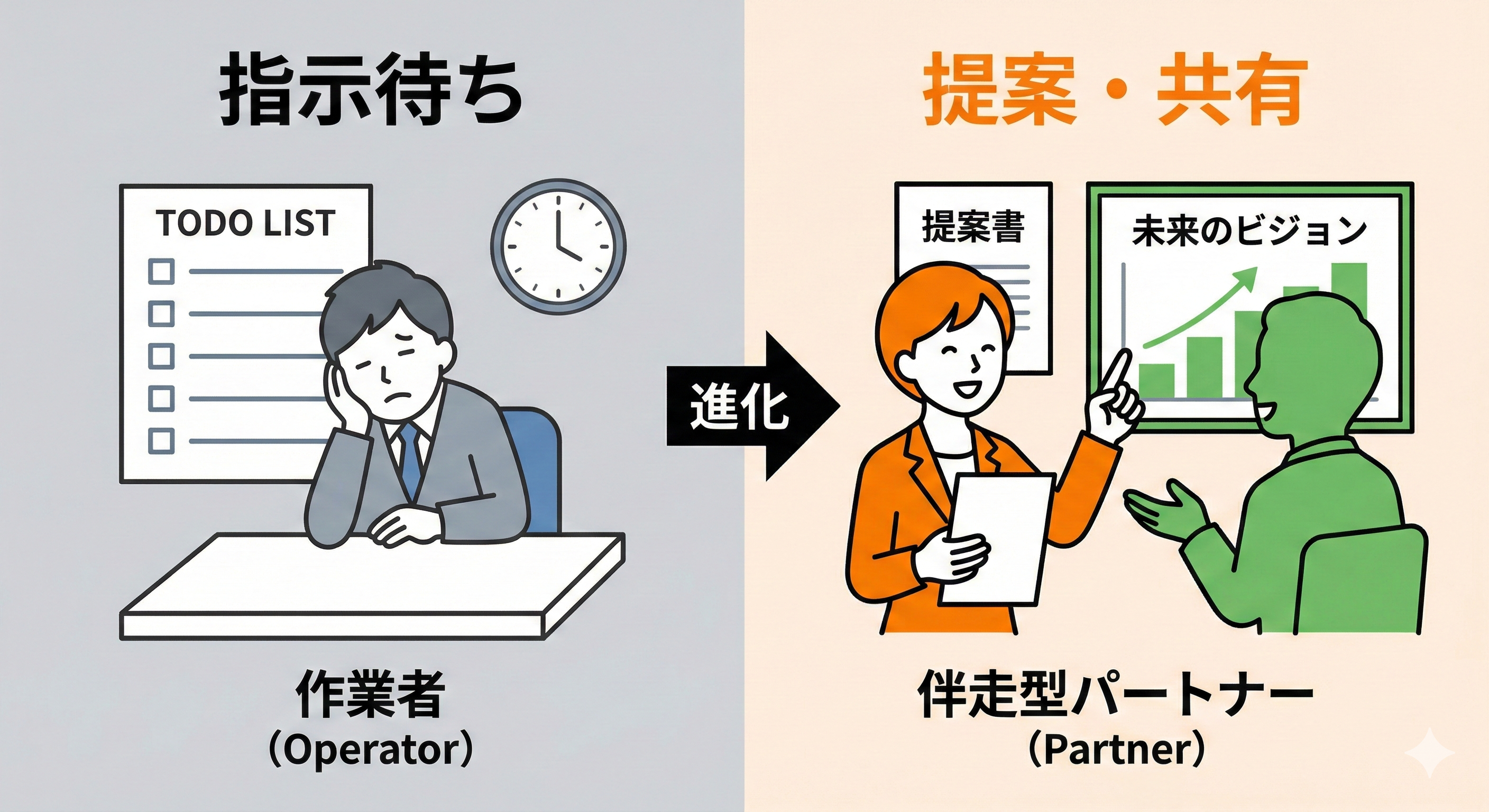 今回のメインテーマは、「作業者(オペレーター)」から「伴走型パートナー」への進化です。 私たちは、ご依頼いただいた案件に対して、ビジネス解像度・ターゲット・本質的な納品物についてチームで意識共有しています。