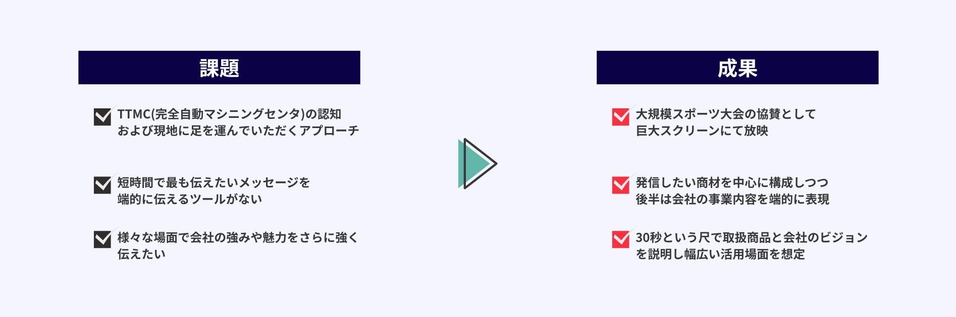 百聞は一見にしかず。言葉で説明しても伝わらない、資料を読み込んでも完全に理解できない。特に物理的かつ多機能な商品・サービスであればビジュアル化することが最善の選択です。大矢伝動精機様はお客様にTTMCをしっかり見学いただくために建屋も作りました。その想いを載せて動画制作させていただきました。